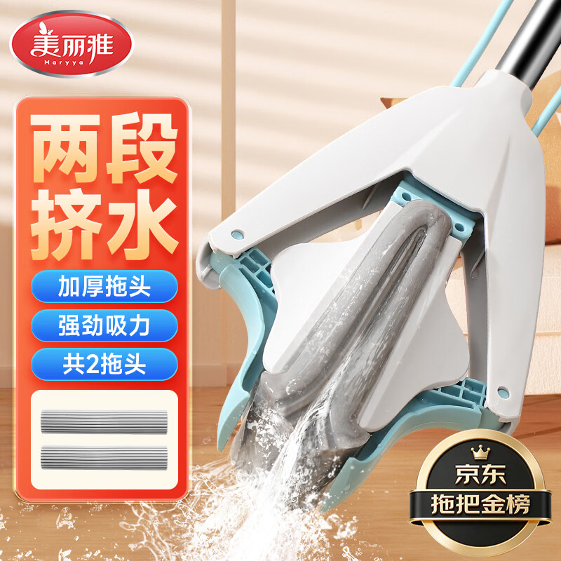 美丽雅胶棉拖把28cm2拖头懒人吸水海绵家用一拖净免手洗卫生间拖地神器