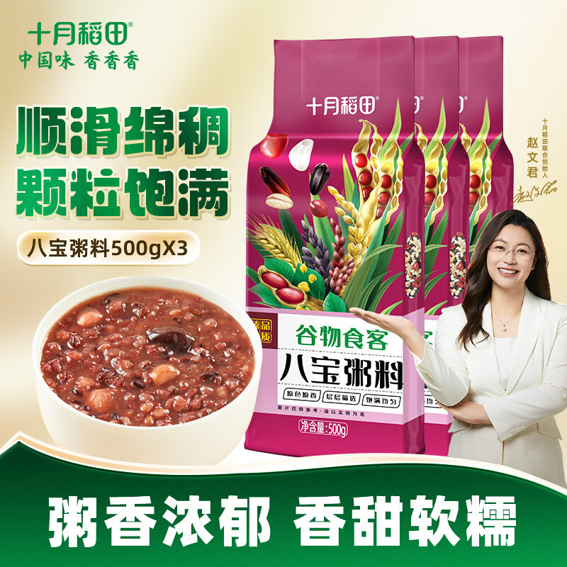 十月稻田 八宝粥料500g 精选腊八粥原料 营养早餐 香浓八宝米莲子芸豆粥 500g*3袋