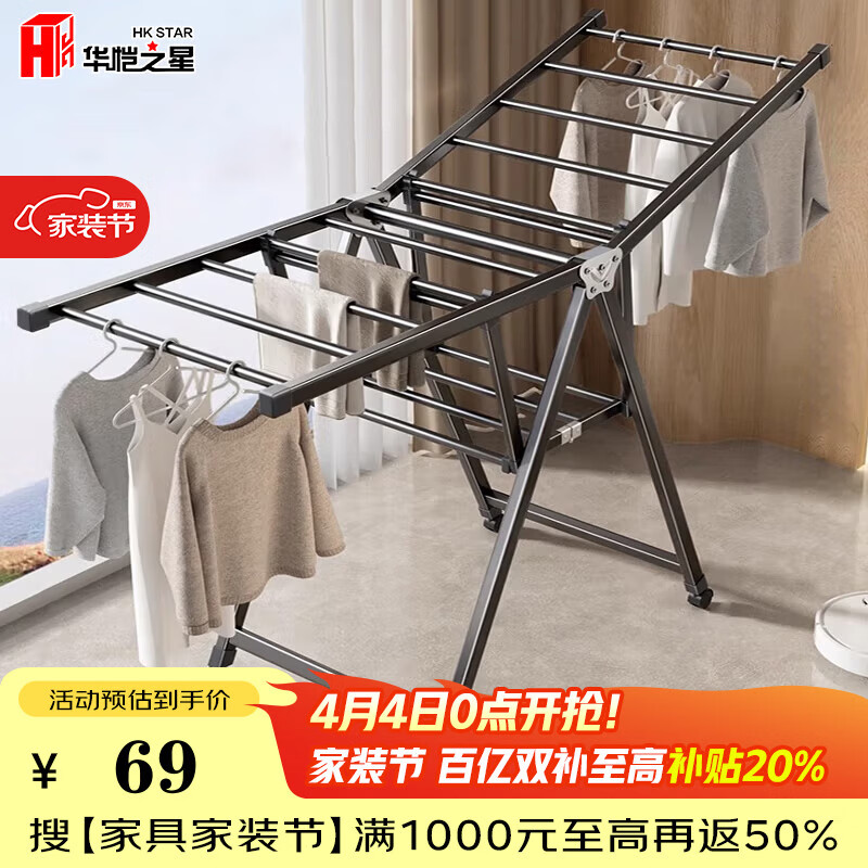 华恺之星 晾衣架落地衣架折叠挂衣架室内晾衣杆阳台晒被子架YJ79双层 1.4m