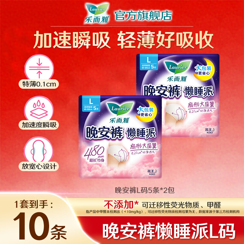 乐而雅安睡安心裤姨妈女经期用防漏学生 L 10条 80-140斤 懒睡派