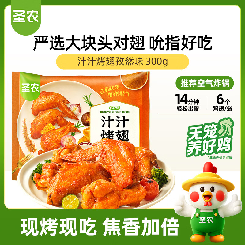圣农汁汁烤翅孜然味 净重300g/包 3对翅 冷冻半成品 空气炸锅食材美食