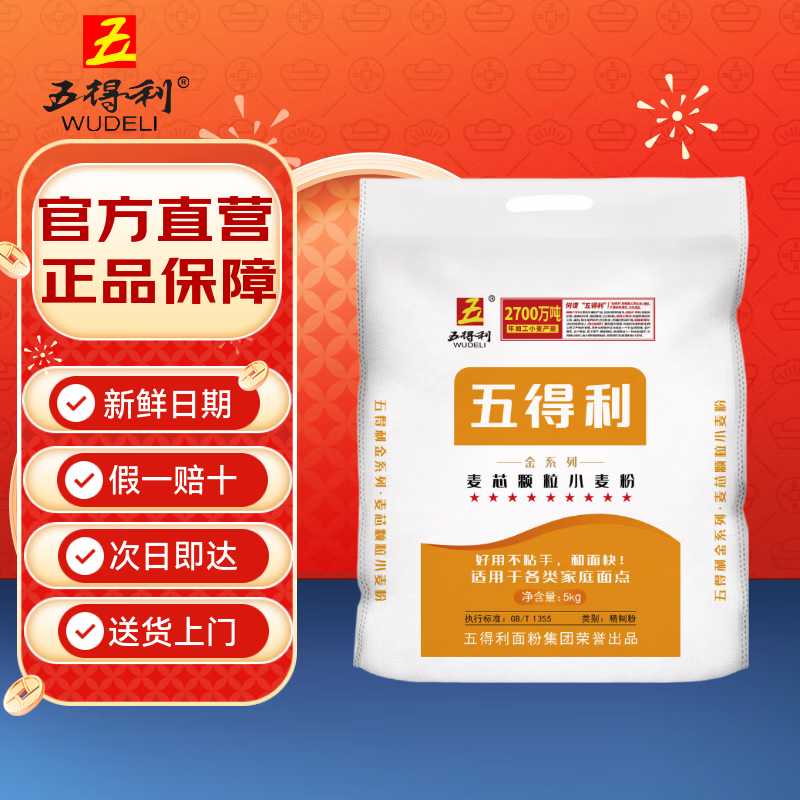 五得利面粉 金系列九星麦芯颗粒小麦粉10斤 家用优质面粉 多用途好面粉
