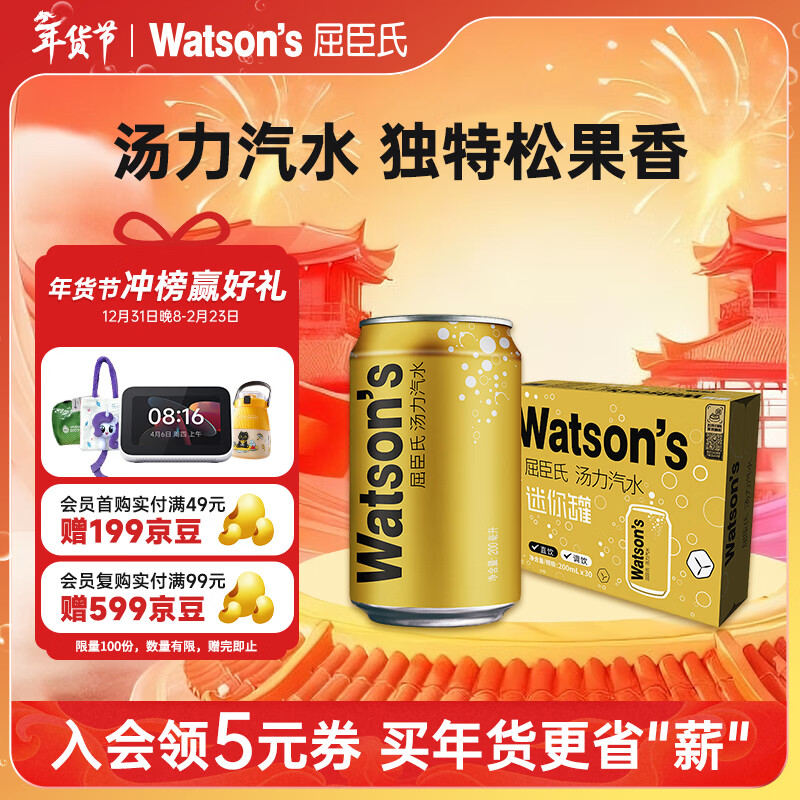 屈臣氏(Watsons)汤力汽水mini罐迷你整箱0脂金酒调酒气泡水200mL*24罐