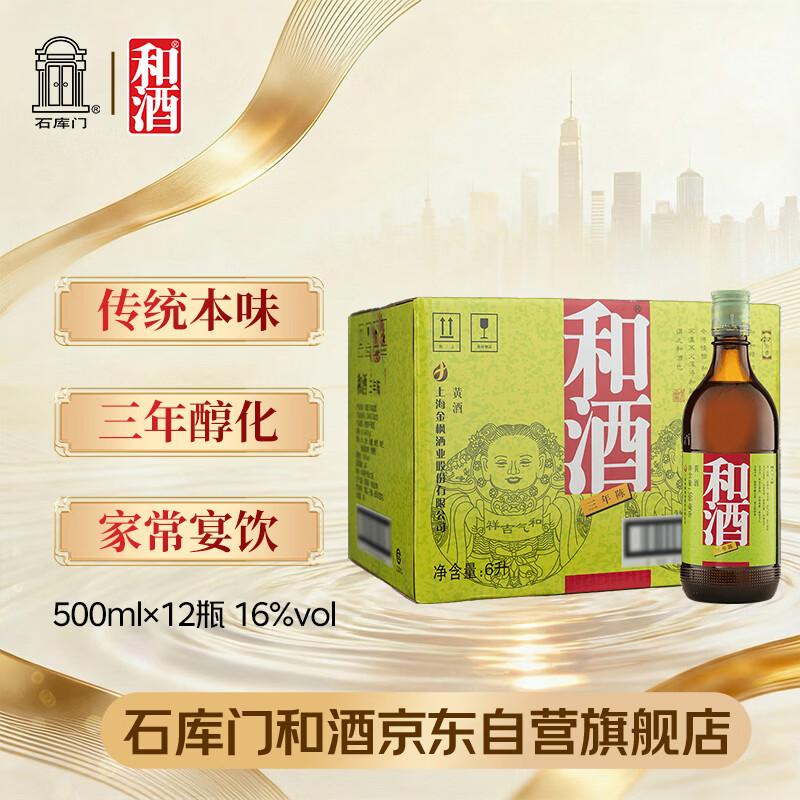 和酒 三年 半干型 海派黄酒 500ml*12瓶 整箱装 上海老酒 节日送礼