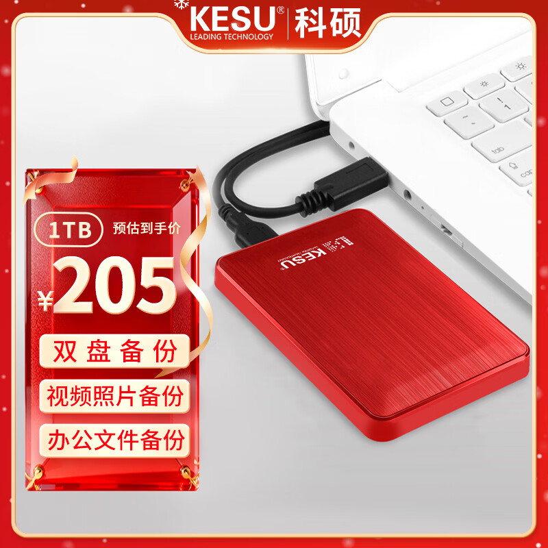 科硕(KESU)1TB 移动硬盘大容量 双盘备份USB3.0 外接机械硬盘 海量存储 手机连接 2.5英寸 家庭存储
