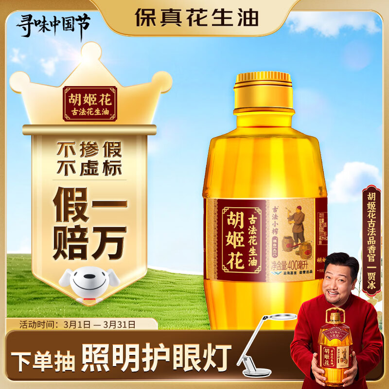 胡姬花 食用油【保真花生油】古法小榨花生油400ml
