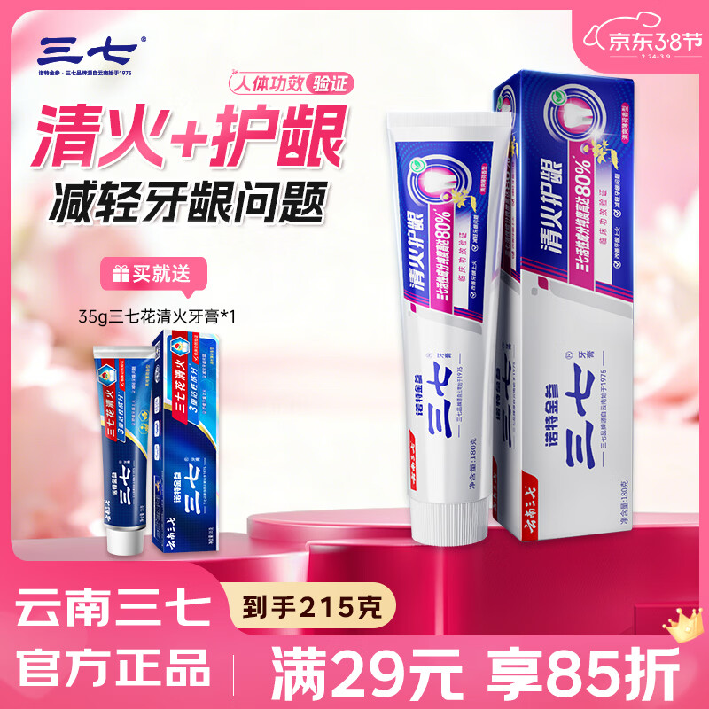 三七清新护龈牙膏云南三七清火亮白去口臭口气清新薄荷成人180g*1支