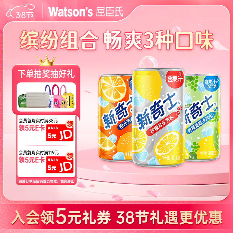 屈臣氏(Watsons)汽水迷你罐200ml*12(柠檬可乐4+橙汁4+柠檬青提汁4)整提