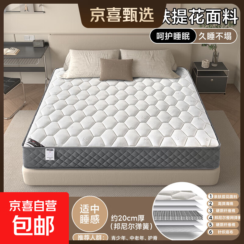 【京喜甄选】席梦思软硬两用弹簧床垫乳胶椰棕家用1.8 ×2米卧室 加密弹簧+亲肤提花面料~约20cm 150cm*200cm