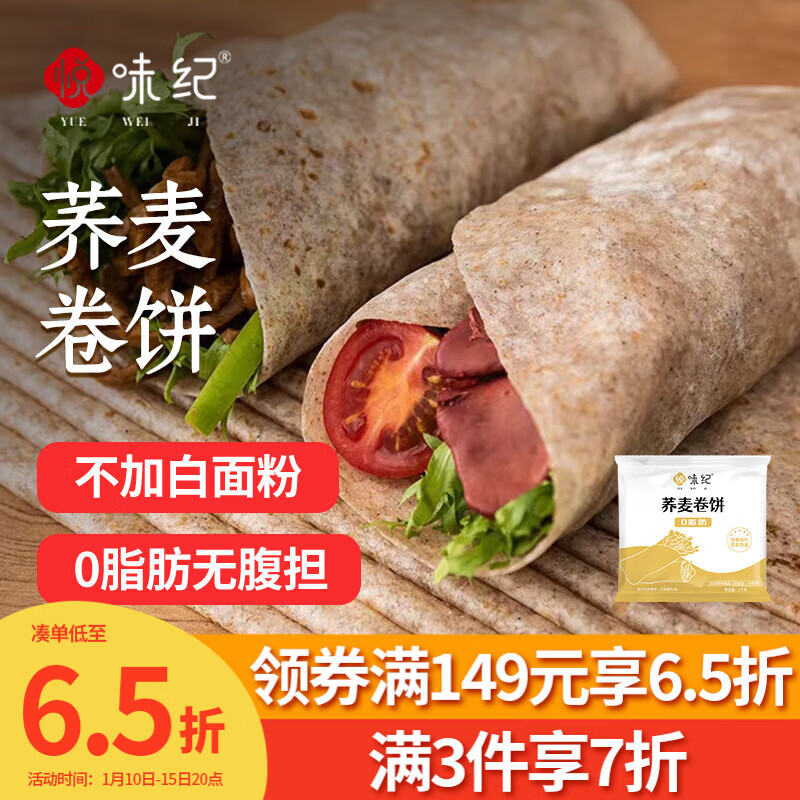 悦味纪 荞麦卷饼1.5kg 36张 0脂 代餐主食 手抓饼粗粮 早餐半成品 速食