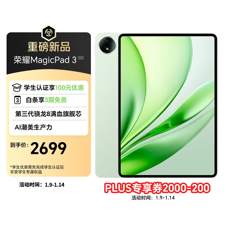 荣耀MagicPad3 12.5英寸平板电脑 【国家补贴】AI潮美生产力 第三代骁龙8满血旗舰芯 8GB+256GB 放青松