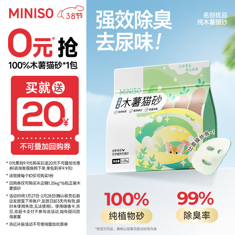 名创优品猫砂木薯猫砂次日达京东自营猫砂除臭纯木薯植物猫砂不沾底*1包