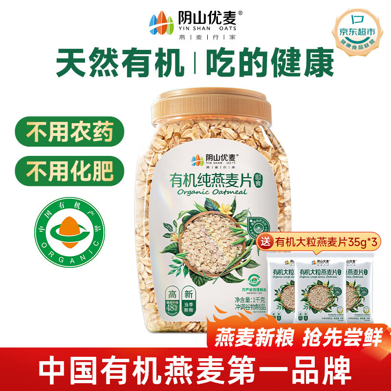 阴山优麦有机裸燕麦片1000g桶装 高蛋白膳食纤维 0添加蔗糖 免煮 营养早餐