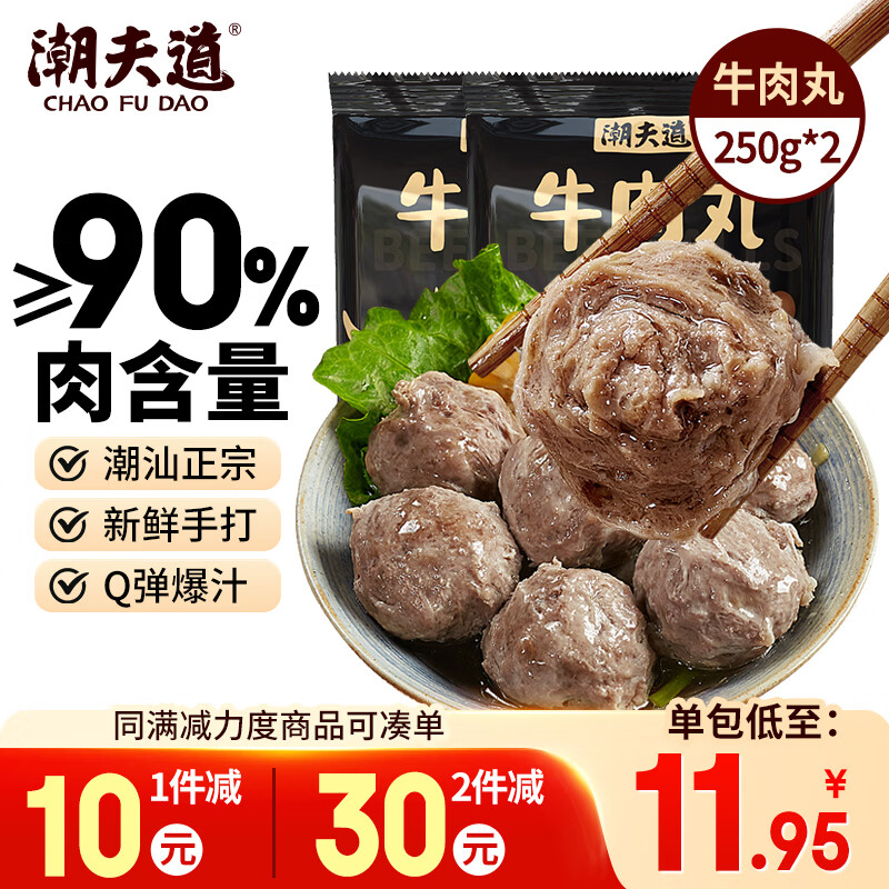 潮夫道牛肉丸250g*2潮汕手打火锅食材关东煮丸子空气炸锅麻辣烫关东煮