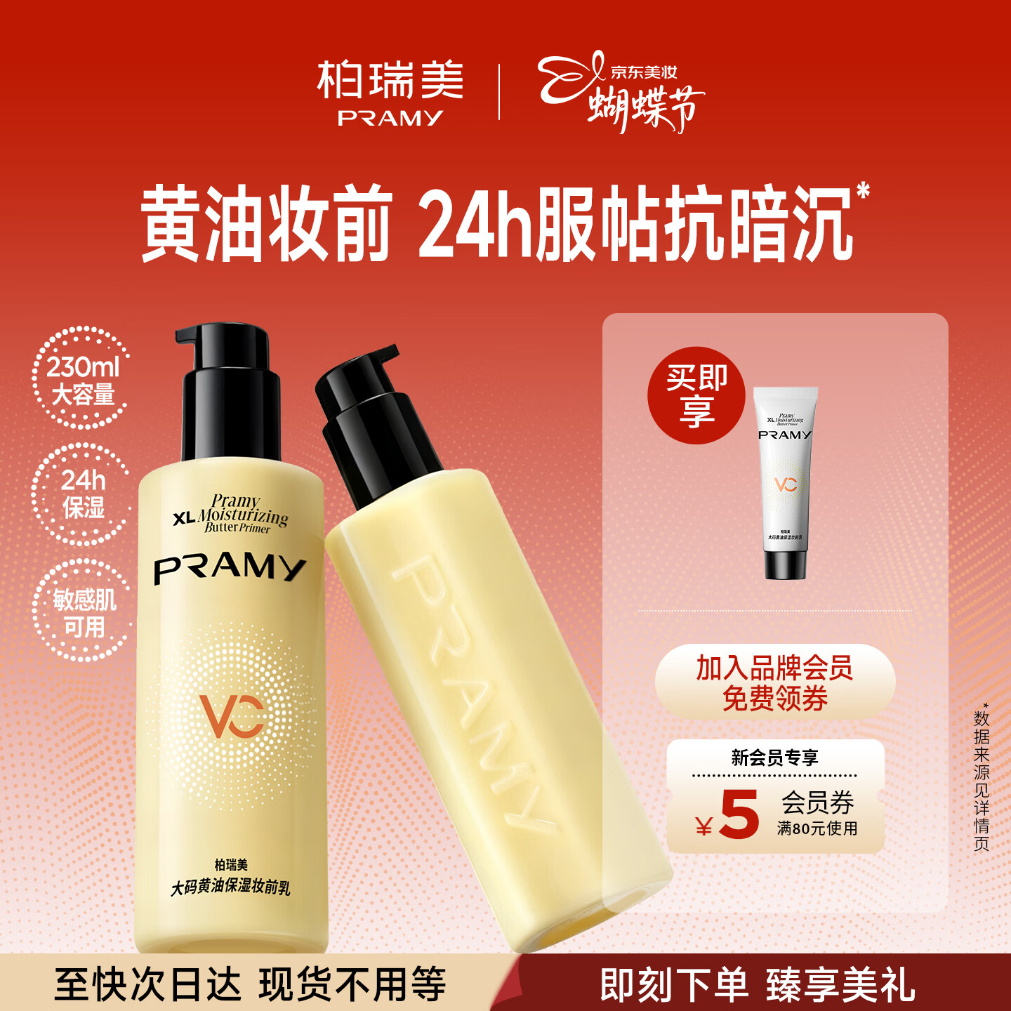 柏瑞美(PRAMY)大码黄油妆前乳230ml保湿服帖舒缓敏感肌适用三八节女神礼物