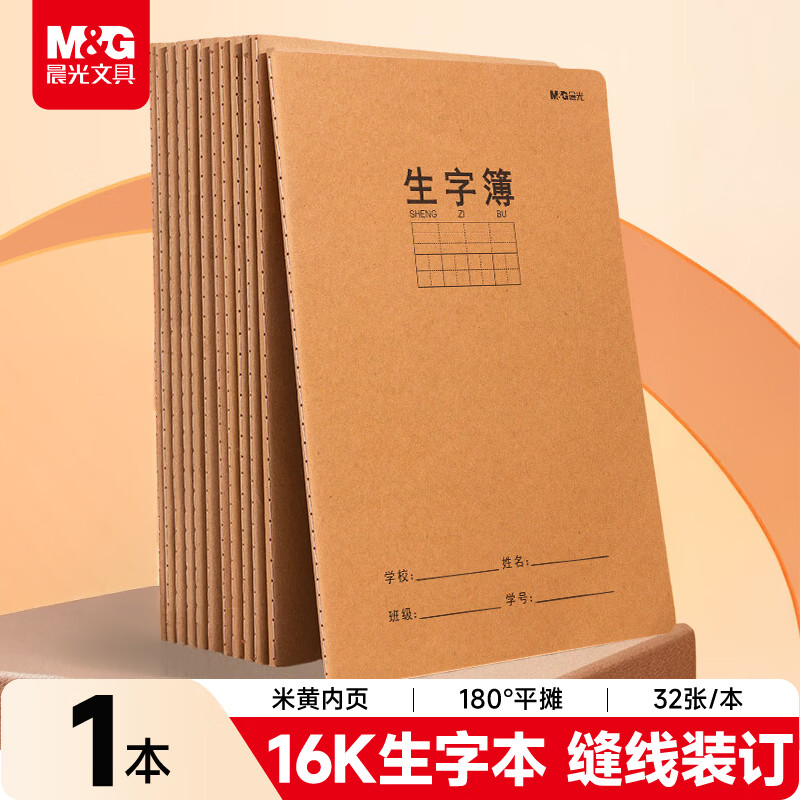 晨光(M&G)文具16K生字本 32张缝线作业本笔记本本子 牛皮纸初中学生练习簿错题本 1本装F16360AH开学必备