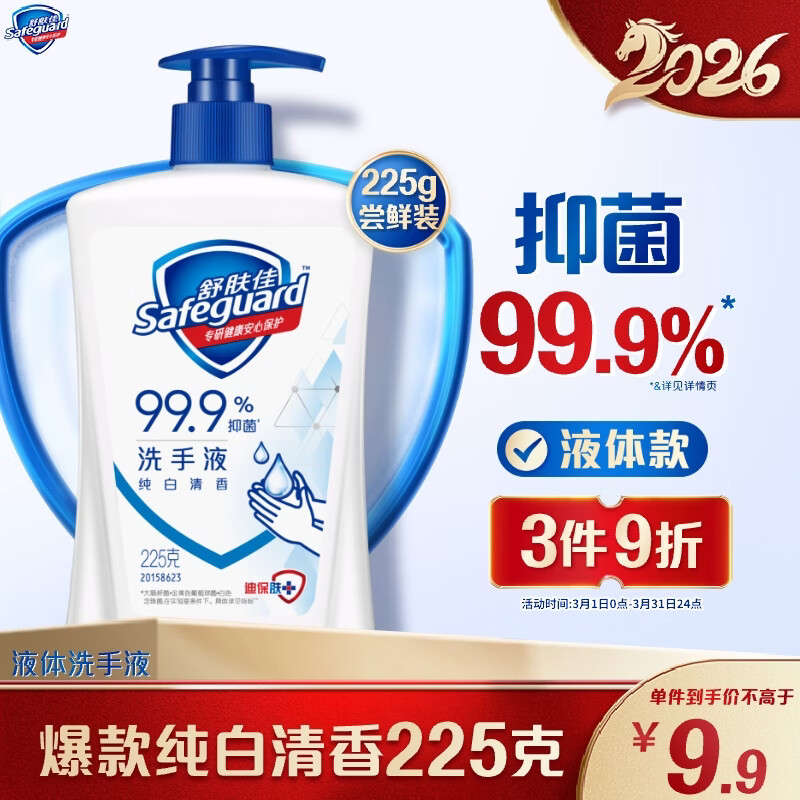 舒肤佳抑菌洗手液 纯白清香225g 健康抑菌99.9% 温和洁净保湿