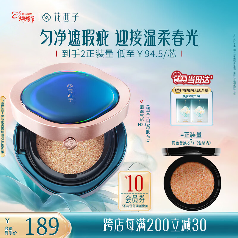 花西子翡翠气垫N20遮瑕持久控油服帖裸妆轻薄滋润粉底液BB女神节礼物