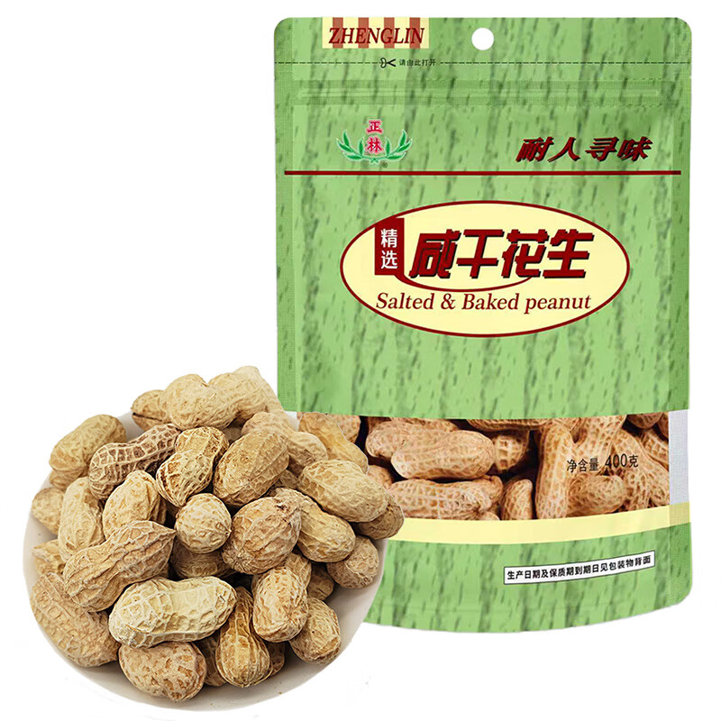 正林咸干花生400g/袋每日坚果炒货休闲零食小吃(新旧包装随机发放)