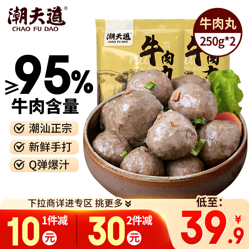 潮夫道纯牛肉丸250g*2牛肉含量95%不含猪肉潮汕手打火锅食材麻辣烫烧烤