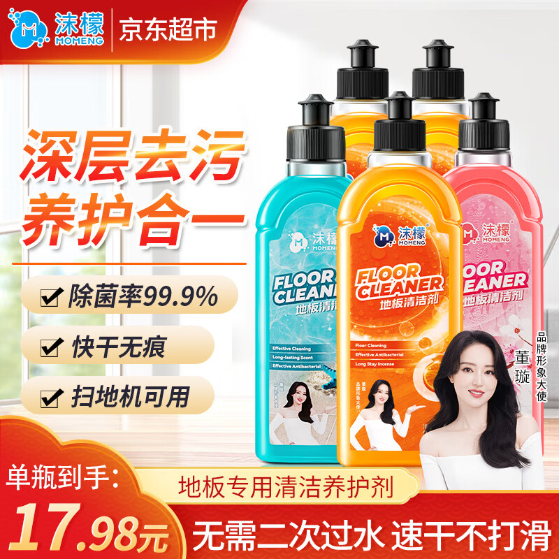 沫檬地板清洁剂500ml*5瓶 拖地瓷砖地板清洗剂 洗地机清洁液去污杀菌