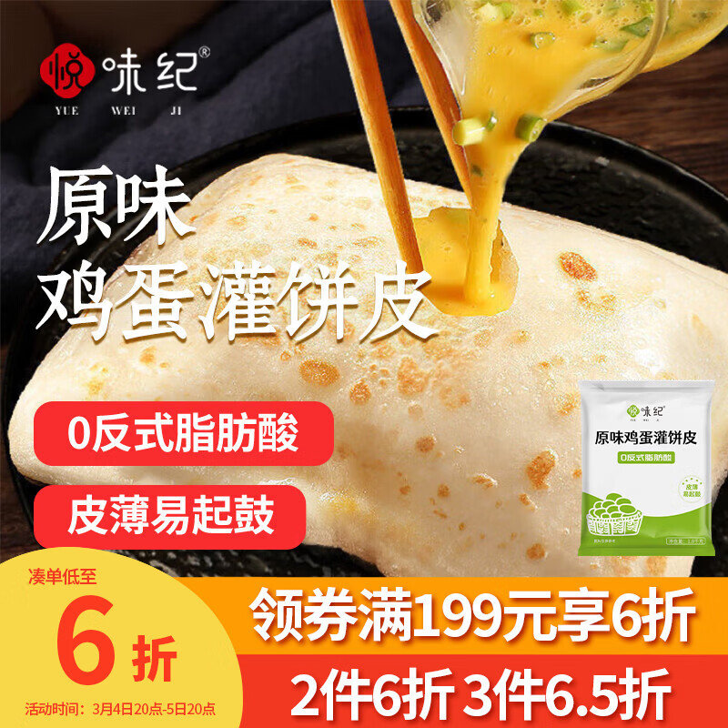 悦味纪 原味鸡蛋灌饼皮1.8kg 20张 手抓饼卷饼 早餐半成品0反式脂肪酸