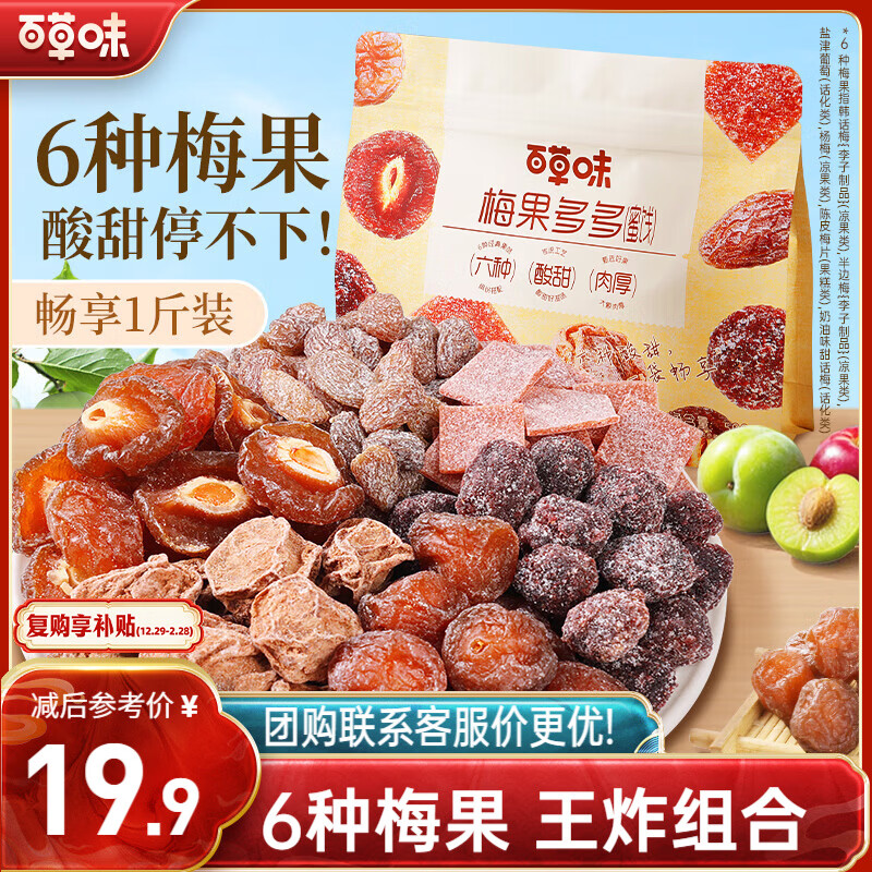 百草味梅果多多500g混合口味话梅杨梅葡萄干蜜饯果脯果干网红零食