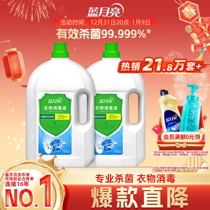 蓝月亮衣物消毒液 松木清香 3kg*2瓶杀菌率99.999% 专业消毒
