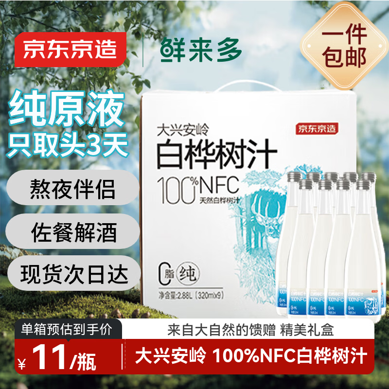 京东京造鲜来多100%NFC白桦树汁原液320ml*9瓶0脂天然植物饮料年货礼盒