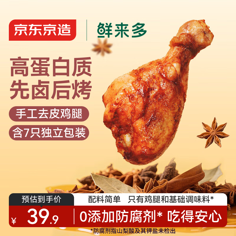 京东京造鲜来多高蛋白烤鸡腿525g 卤香7只整去皮鸡腿即食健身减肥减脂代餐