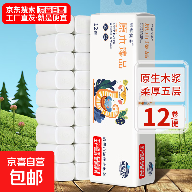 【山海经定制】原木卷纸厕纸卫生纸手纸厕所用纸家庭装实惠装 山海经卷纸450克【12卷*1提】