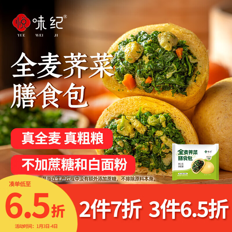 悦味纪 全麦荠菜膳食包1.2kg 12个 手工菜团子粗粮杂粮包 早餐半成品
