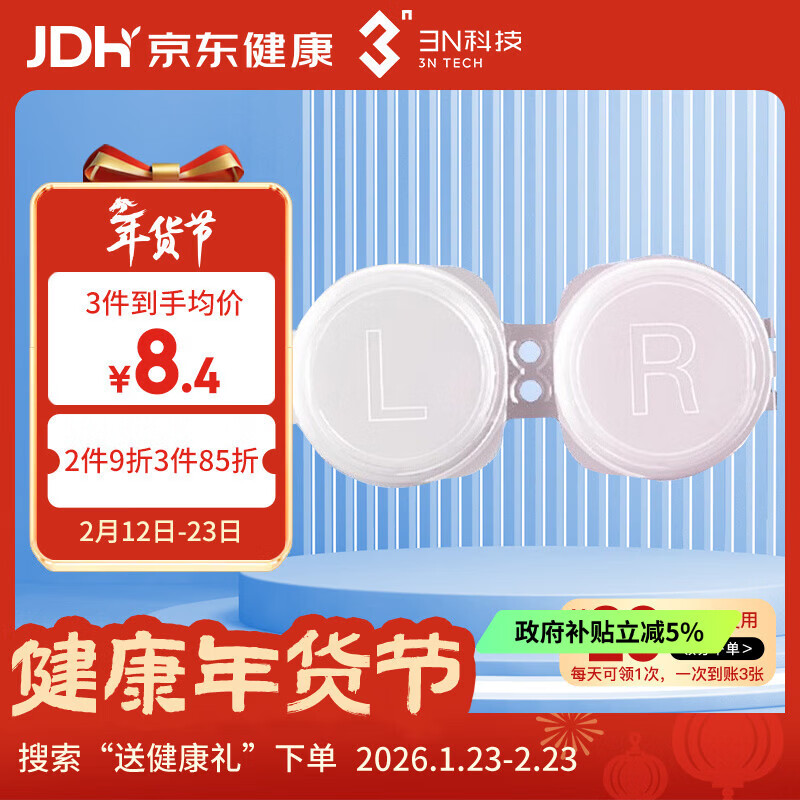 3N隐形眼镜盒配件抗菌收纳双联美瞳盒3件套(镜盒+夹子+吸棒)