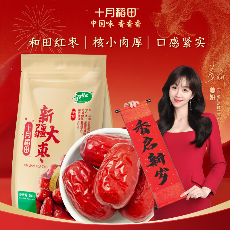 十月稻田 新疆红枣 500g 和田骏枣大枣 休闲零食 蜜饯果干 滋补八宝粥