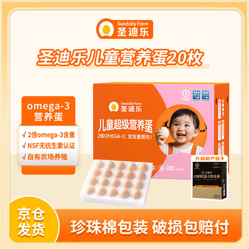 圣迪乐村 OMEGA-3鲜鸡蛋20枚礼盒装净重2斤 儿童宝宝鸡蛋牛奶早餐搭档