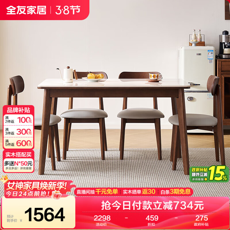 全友家居现代北欧风长方形岩板餐桌椅家庭用小户型客餐厅餐桌椅子全套
