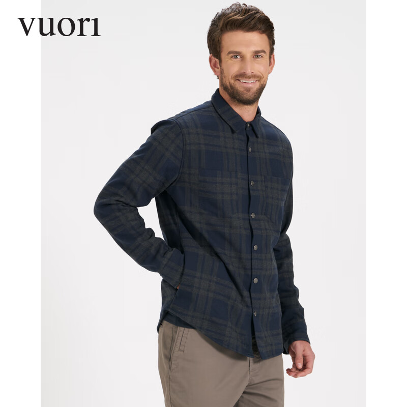 VUORI 飞奥力衬衫长袖休闲装法兰绒格子通勤舒适简约男V246 蓝色/Ink XL 185