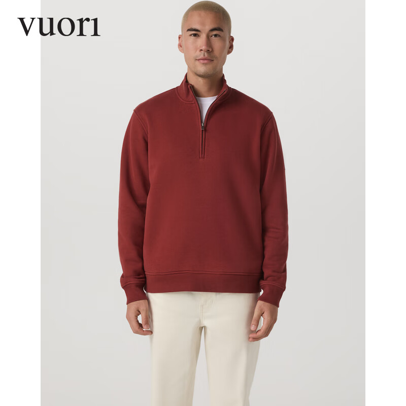 VUORI Seaside 男士立领半拉链卫衣套头衫 柔软 25冬季新品V2076 砖红色/Spiced Apple S 170