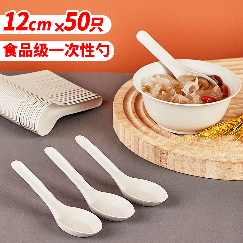 优奥一次性勺子【50只】加厚汤勺餐勺调羹甜品外卖打包勺食品级批发