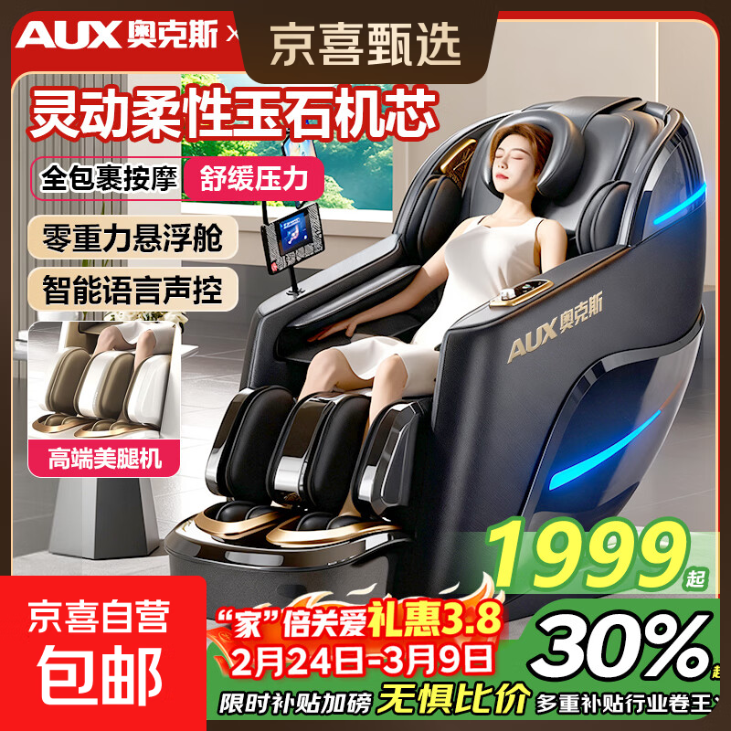 奥克斯(AUX)豪华按摩椅【国家补贴】家用全身按摩全自动太空舱懒人沙发家电按摩仪器送爸妈父母亲节生日礼物 【升级款钢琴黑】全身按摩+全身气囊+超大液晶屏