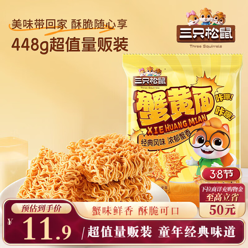三只松鼠蟹黄面14g*32包量贩装夜宵追剧解馋干吃酥脆童年经典膨化零食