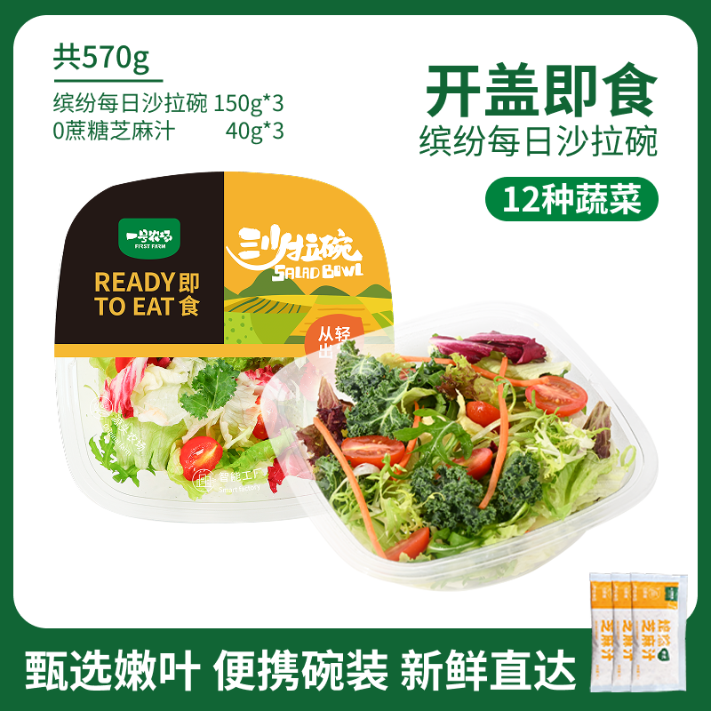一号农场开盒即食12种蔬菜轻食蔬菜沙拉 190g*3碗芝麻汁口味