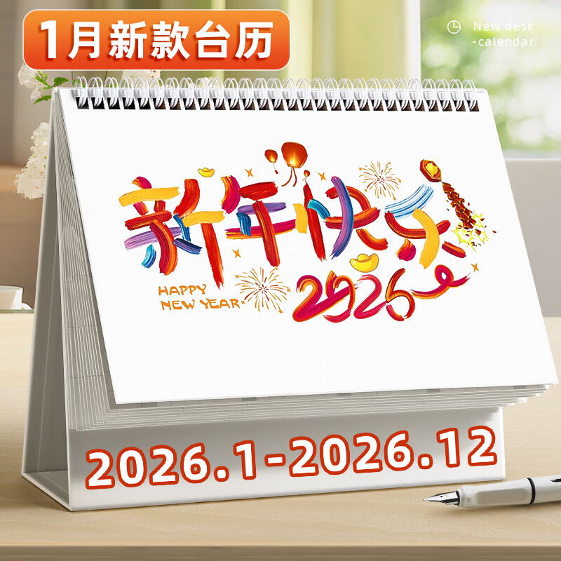 金值 台历2026年日历马年日历记事本挂历大格子龙年历月历周历办公室桌面摆件自律打卡计划本-新年快乐
