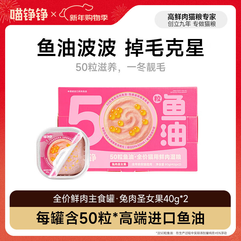 喵铮铮主食罐头湿粮50粒鱼油全价鲜肉猫湿粮幼成猫咪餐盒零食鲜兔肉2罐