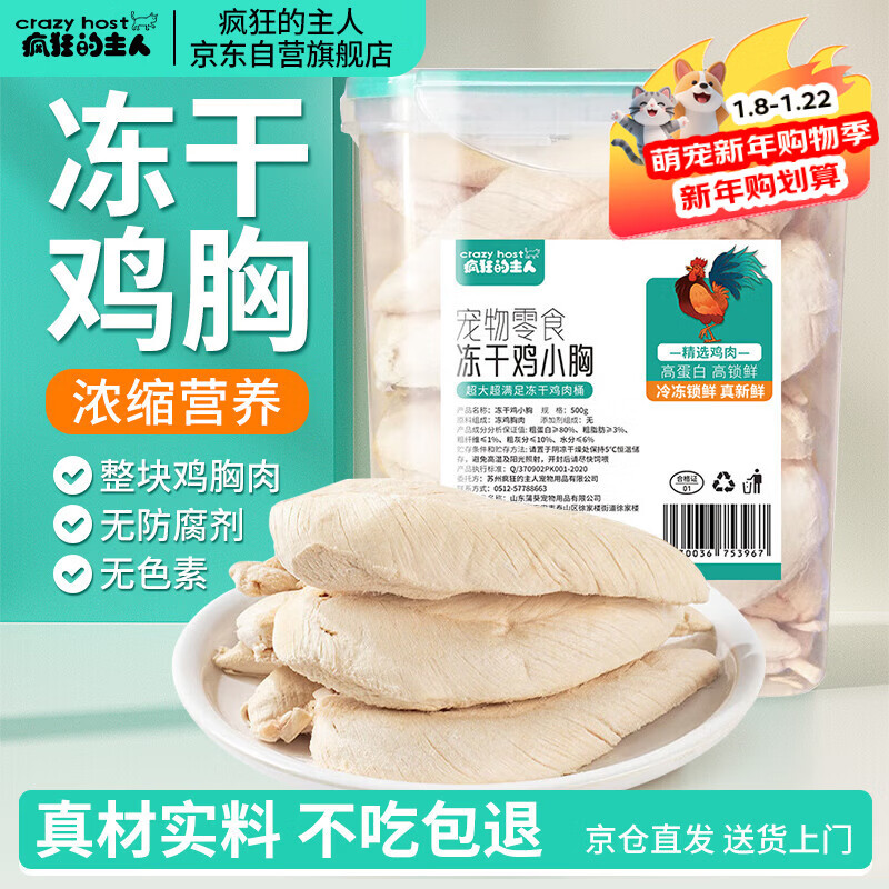 疯狂的主人猫零食鸡胸肉冻干鸡肉粒500g桶装猫咪零食狗狗宠物零食大礼包