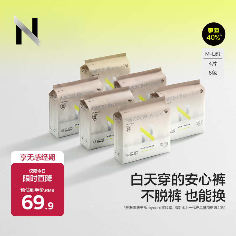 babycare内裤式安心裤产妇安睡裤卫生巾姨妈经期拉拉裤日安裤24条京东自营