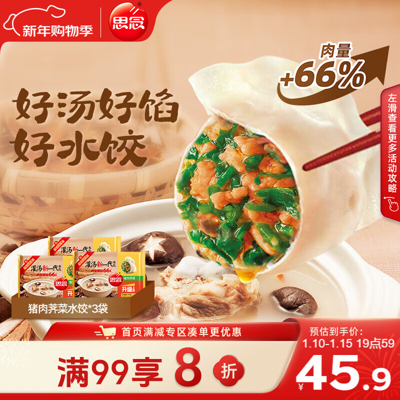 思念猪肉荠菜水饺3kg约135只早餐食品蒸饺速冻饺子家庭装