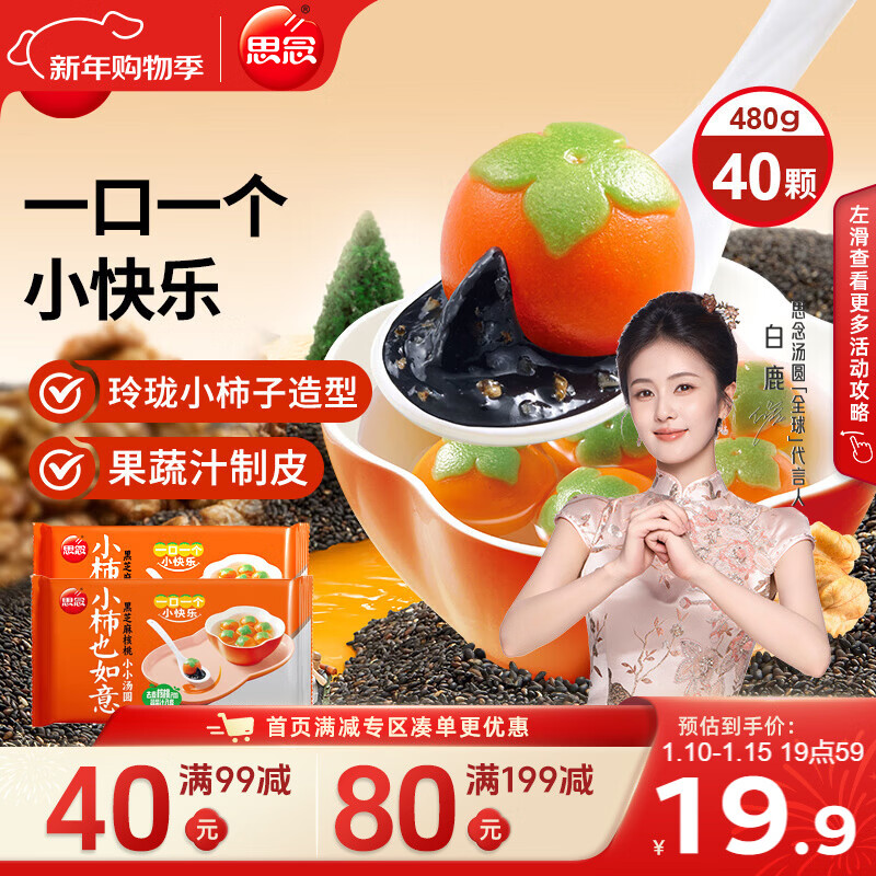 小柿也如意黑芝麻核桃汤圆240g*2袋40颗元宵甜品速冻食品生鲜