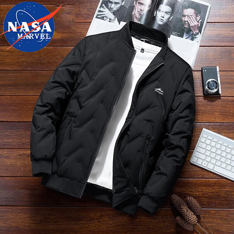 NASA MARVEL羽绒服男短款加厚外套男秋冬季商务简约上衣舒适防寒 黑色 XL