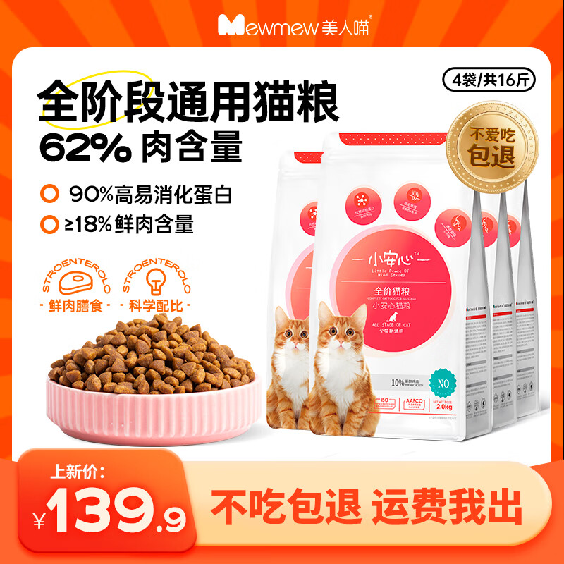 美人喵小安心猫粮成猫幼猫专用英短蓝猫美短发腮呵护全价鲜肉猫粮8kg